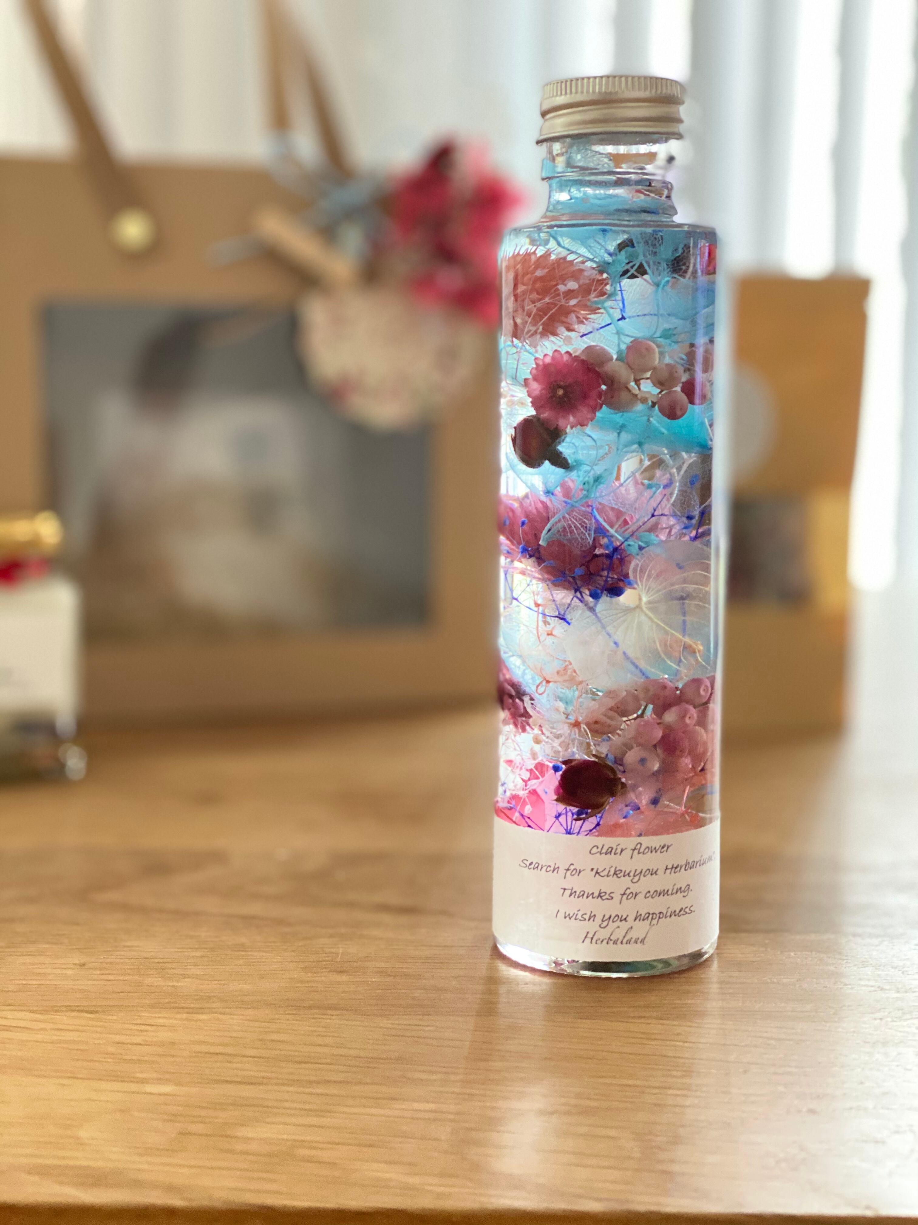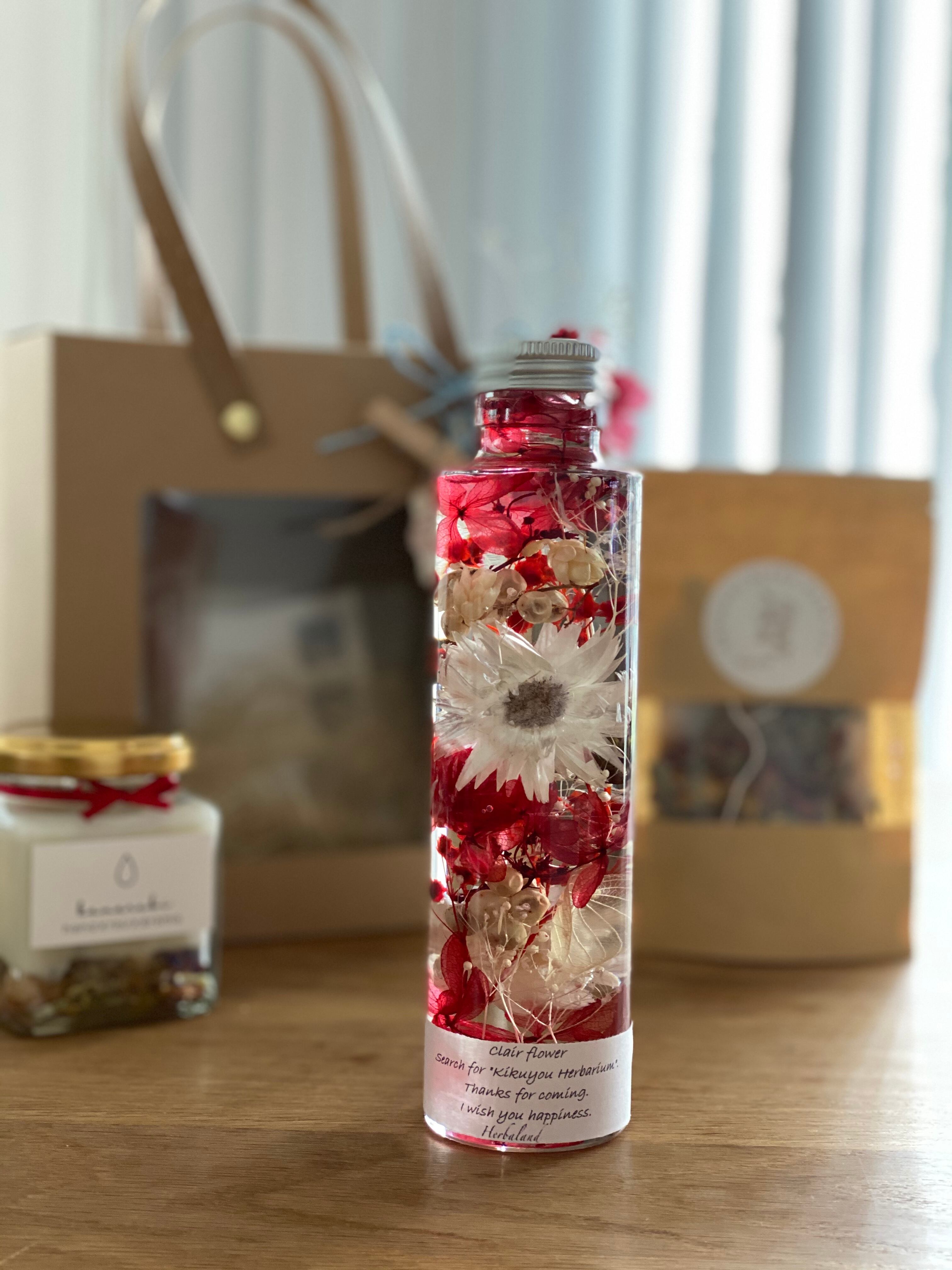 ・ハーバリウムは色とりどりのお花たっぷり入ったデザインの中からお気に入りが絶対にみつかること間違いなし!透きとおる透明感の中に,ポイントのお花が踊るハーバリウム。お部屋に彩りを添えます。