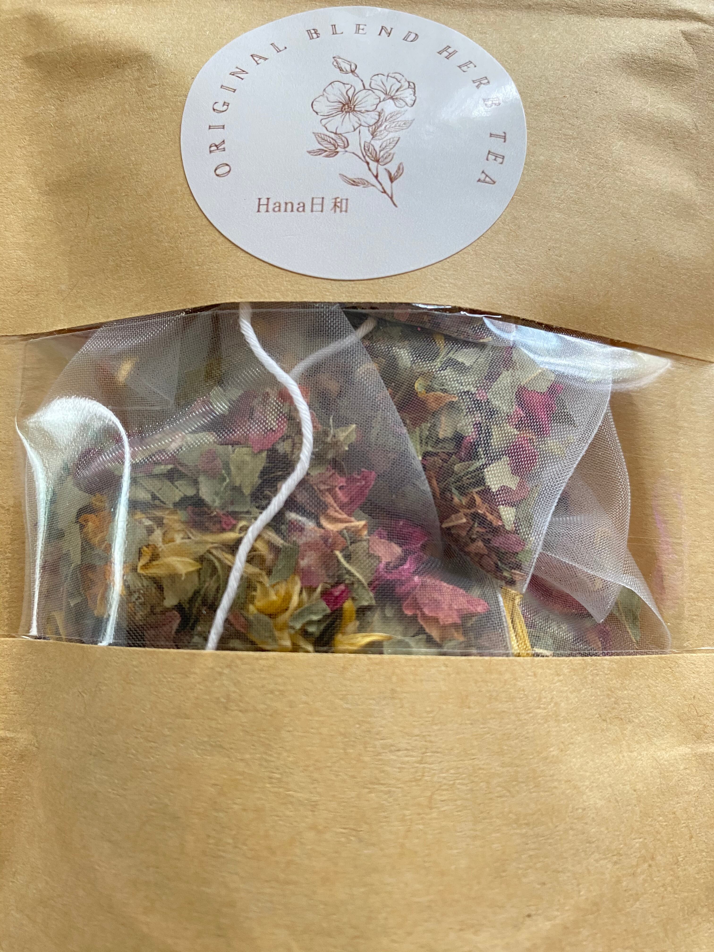 ・ハーブティーは甘い味わいのホルモンバランスを整える女性に人気の高いマリーゴールドとバラが入った色合い可愛いブレンドティー。